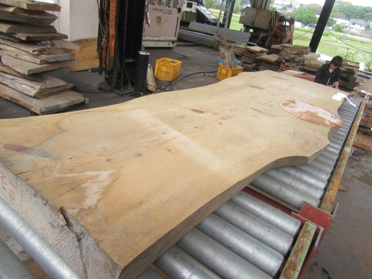- 油谷 №5036 モミ 2100㎜×675㎜ 厚100㎜ 無垢材 天然木 一枚板 銘木 テーブル 机 耳 天板 パソコン台 DIY カウンター 陳列棚棚板 彫刻看板