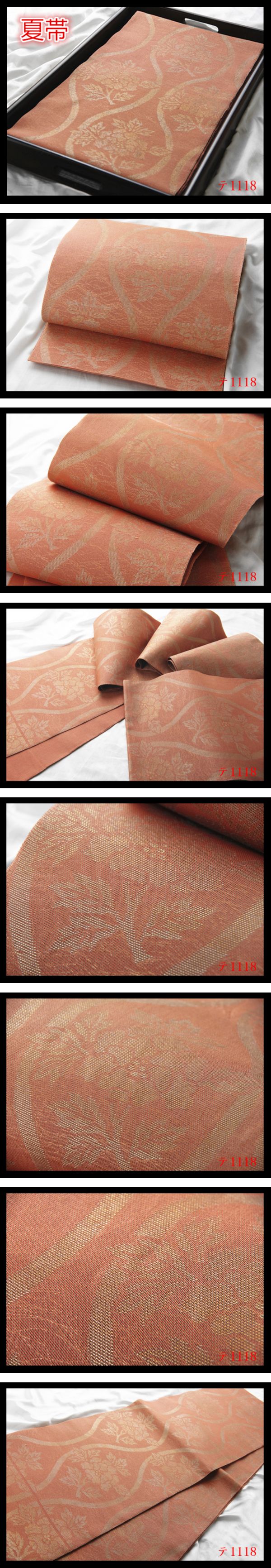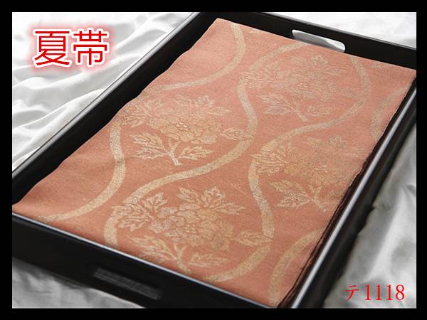 - 蔵【テ1118】西陣逸品 夏帯 紗 立涌草花紋 宍色地 透かし 全通高級美術袋帯 ◇検◇簪着物名古屋帯和装小物帯締め