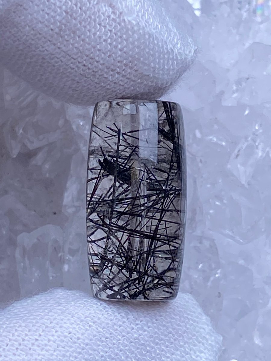 - 即決 0521e199 天然水晶★【45Aブラックルチル】★黒針天珠 22x11.3mm(新品)