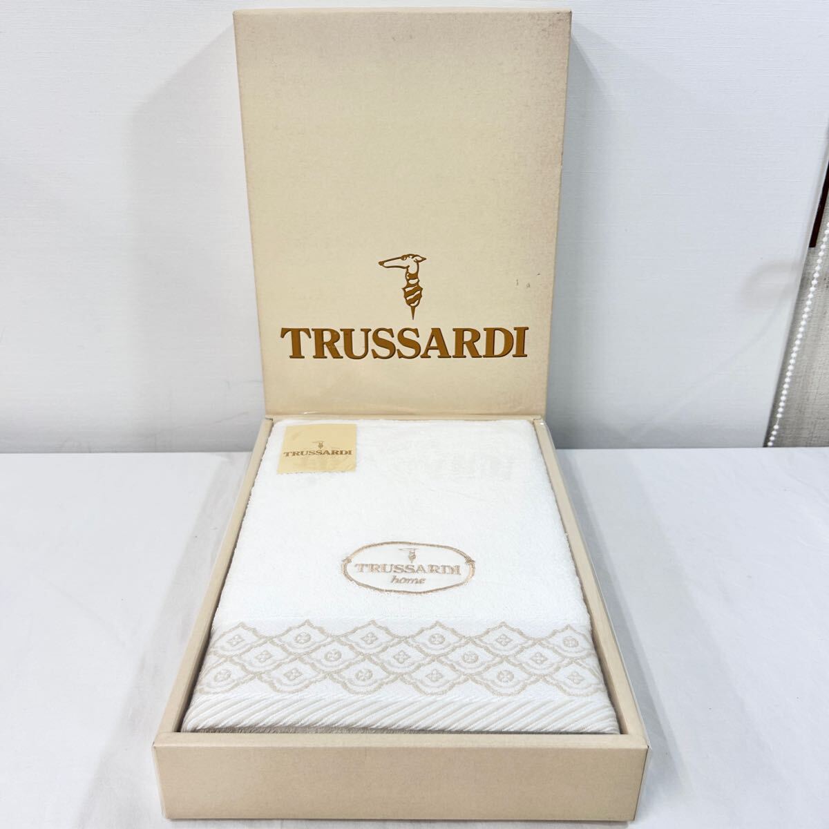 > ★未使用品★120×65cm★ TRUSSARDI トラサルディ トルサルディ バスタオル 白 ギフト 箱入り (05237F