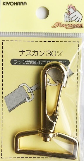 - TT-金属カン 30mm対応(ゴールド)1個 フックが回転してねじれないナスカン ショルダーストラップ金具
