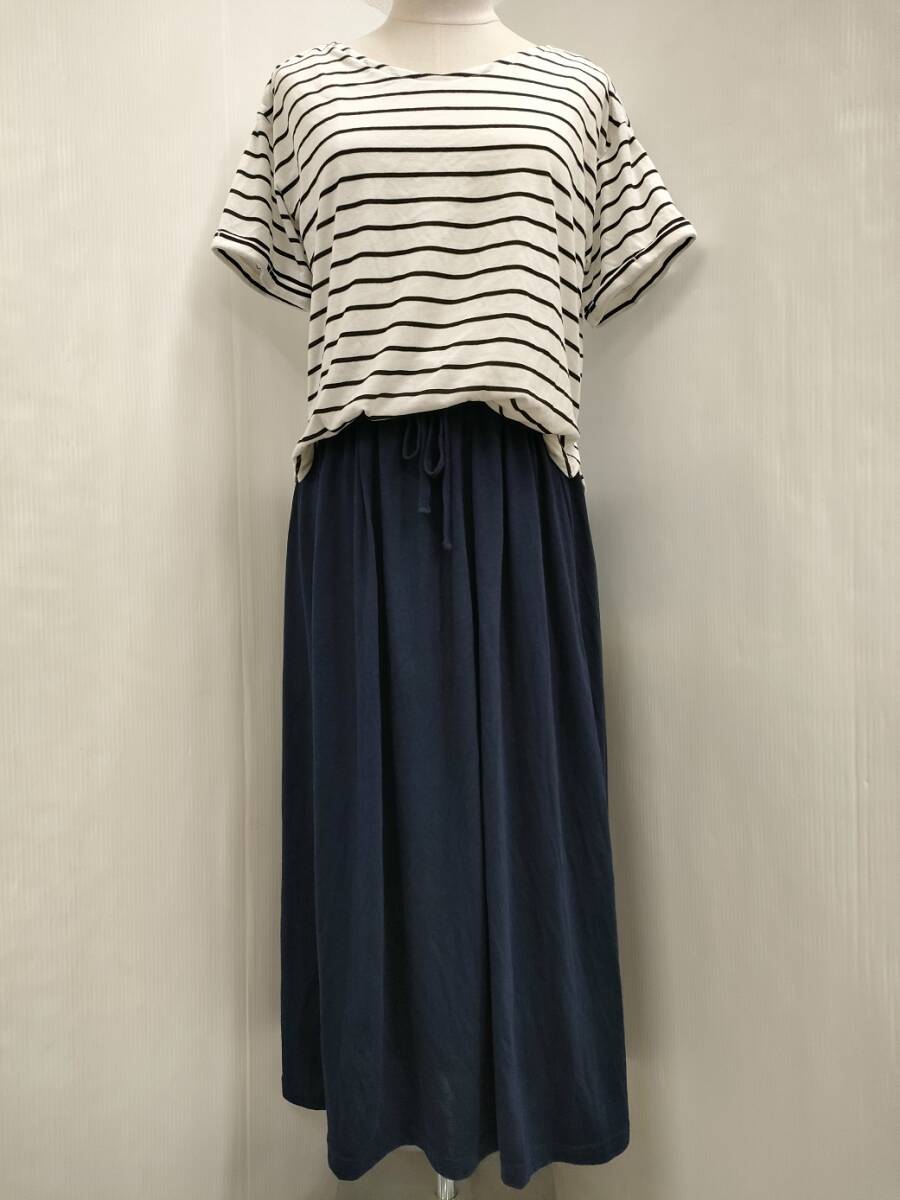 - 【再値下げ!即決!】★OLIVE des OLIVE/オリーブデオリーブ★ドッキングワンピース 半袖 ウエストゴム レディース ボーダー柄 ネイビー M