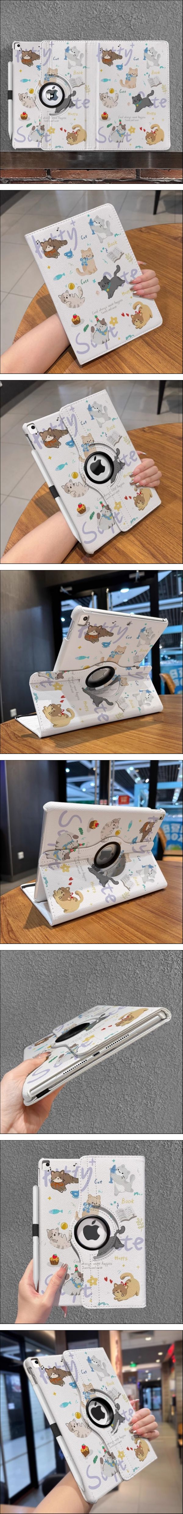 > iPad9 10.2インチケース 第9世代 保護カバー 段階調整 360度回転 耐衝撃 スタンドタイプ ペン入れ ハンドストラップ付き 超可愛い ねこ