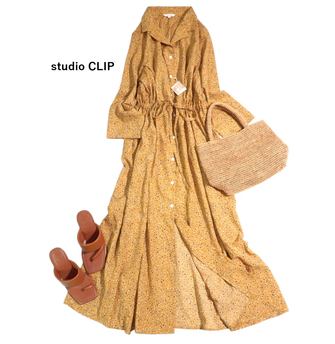 - 未使用 スタジオクリップ studio clip 大人可愛い☆ 総柄 ドロストウエストマーク ロング シャツ ワンピース L 羽織にも