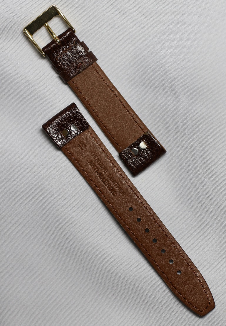 - 18㎜ オープンエンド 茶・ブラウン 型押 金色銀色尾錠2色付 イタリアンカーフ ワイヤーラグ用 固定ラグ fixed lug 新品