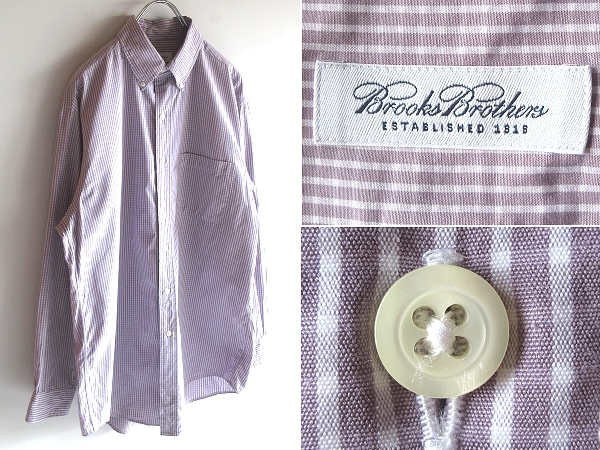 - 希少 90sビンテージ Brooks Brothers ブルックスブラザーズ コットン チェック BDシャツ 15H 32/33 ラベンダー ホワイト 紫 白 ネコポス可