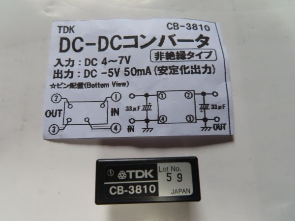 - 【未使用】 TDK CB-3810 入力4~7V/出力 -5V 50mA 非絶縁 負電圧 DC-DC コンバータ 【在庫多数有】