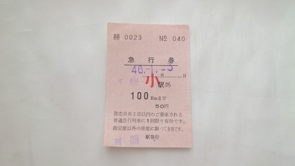 - △国鉄△両国から小児用急行券△軟券昭和46円