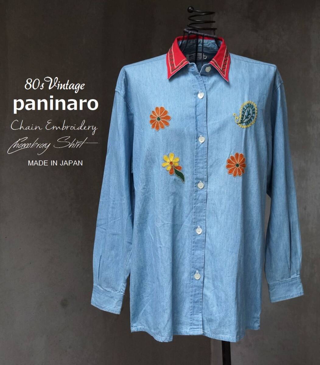 - 80s 日本製 パニナロ paninaro 刺繍飾り付き 長袖 シャンブレー シャツ 40