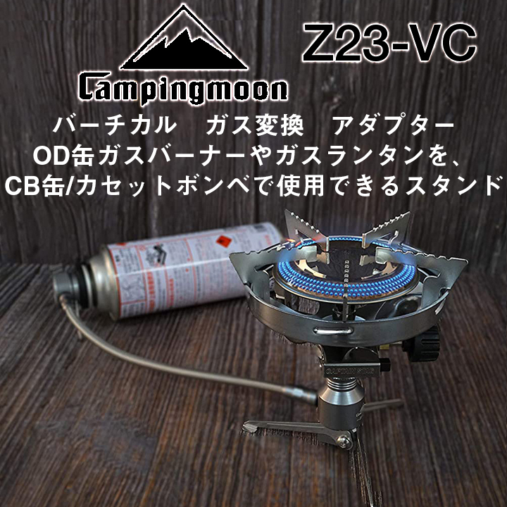 - キャンプガスOD缶CB缶変換アダプター【キャンピングムーン】ランタン/トーチ/バーナー/ストーブ専用*スタンド型バーチカルZ23-VC