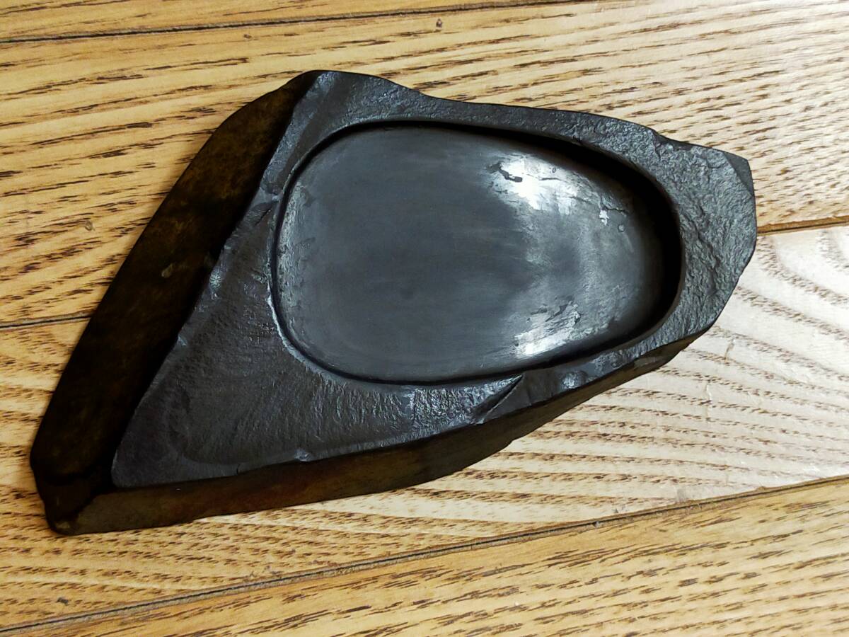 - 硯 すずり 自然石 石の蓋つき 重さ467グラム 長さ約15センチ 寺院所有品 中古