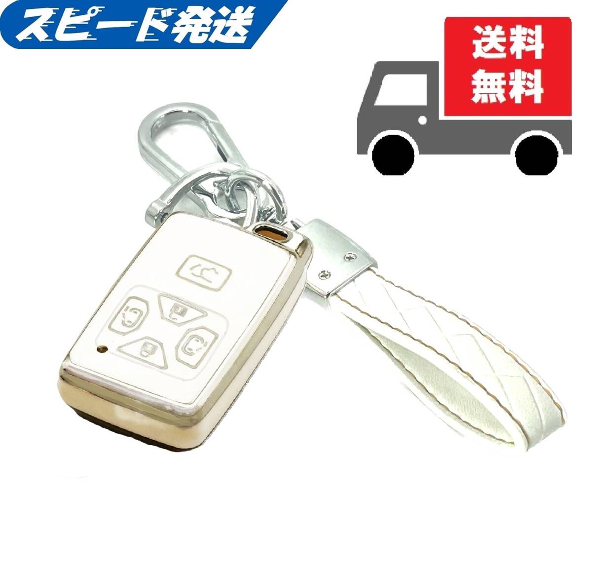 > ★送料無料★キーホルダー付★トヨタ用★キーケース キーカバー★ホワイト(シルバー)5ボタン★Fタイプ