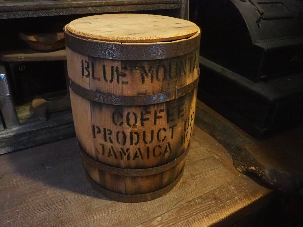 - 【blue mountain木製コーヒー豆樽】蓋つき古道具アンティーク骨董インテリア植木鉢カバー傘立てインダストリアルカフェbarガーデニング