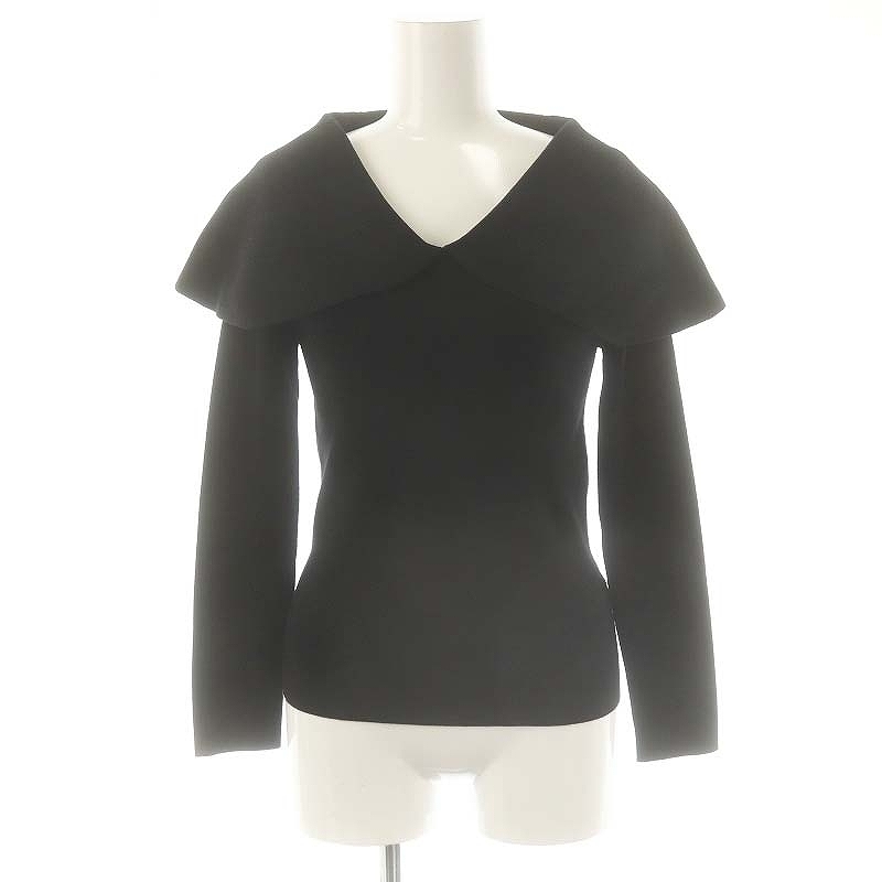 > スナイデル SNIDEL ビッグカラーニットプルオーバー カットソー 長袖 F ブラック /HK ■OS レディース