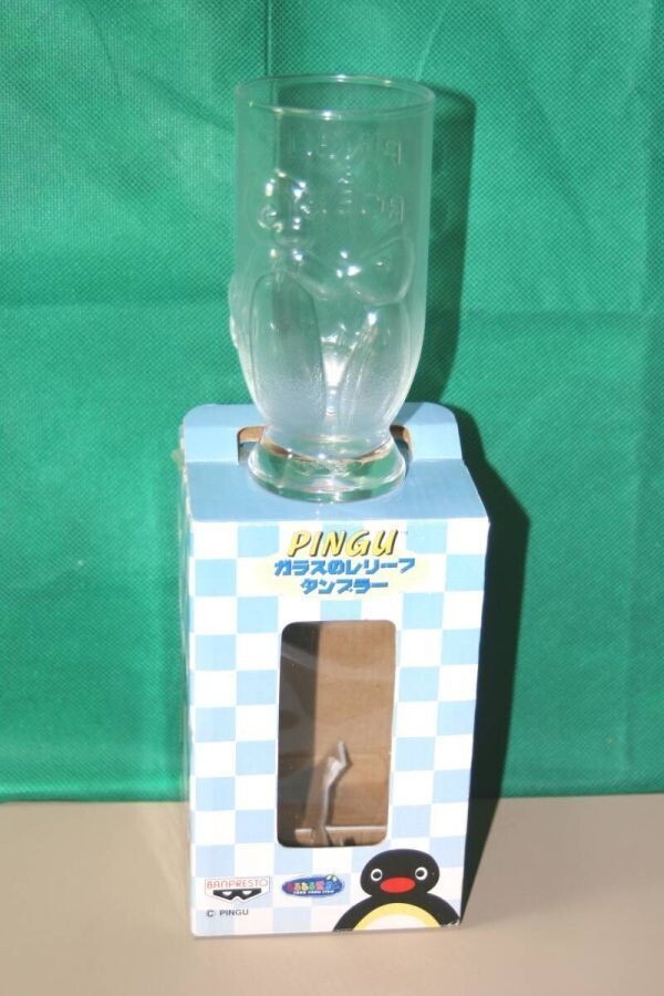 - ピングー PINGU ガラスのレリーフ タンブラー PINGU&ROBBY バンプレスト BANPRESTO 1998年 日本製 ソニークリエィティブ グラス ロビー