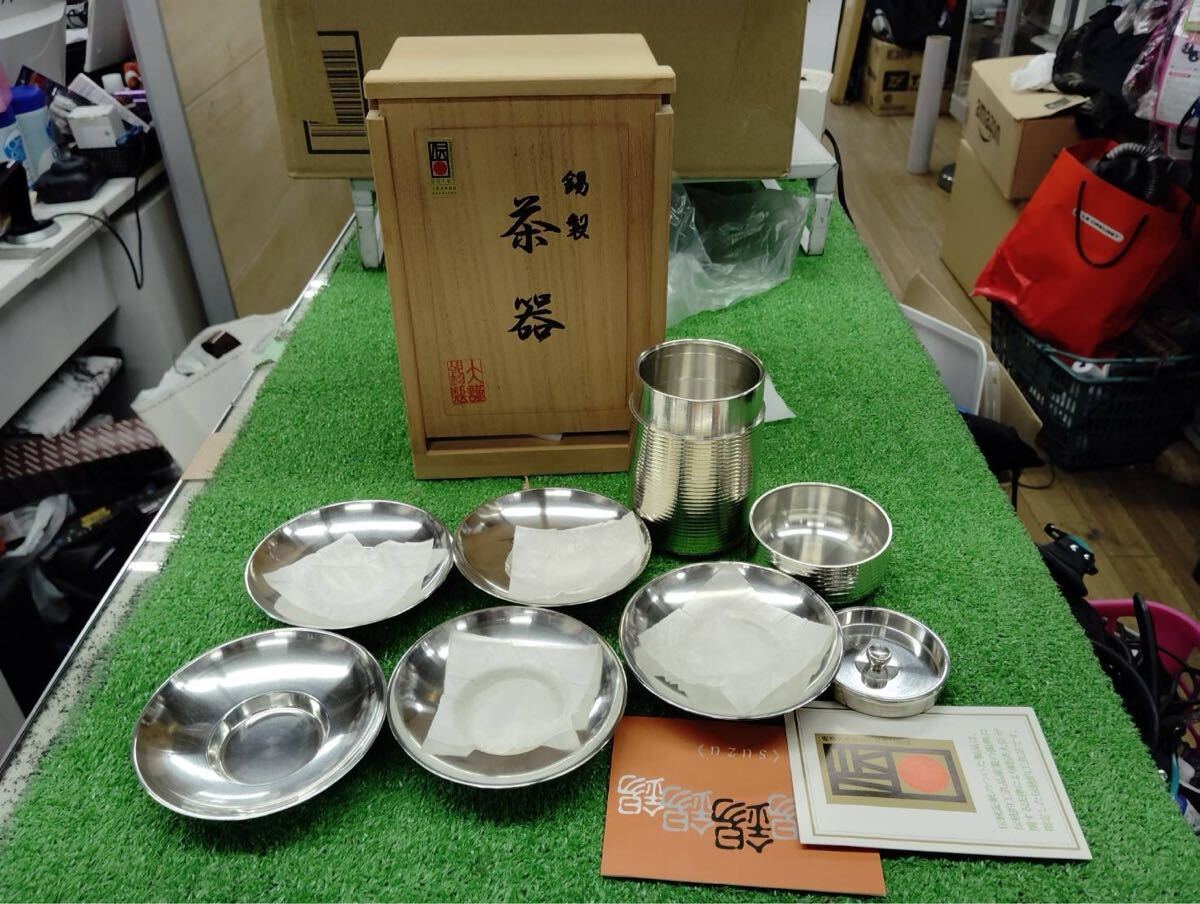 - ○H9073 未使用 茶器 錫製 茶筒 伝統工芸 セット○