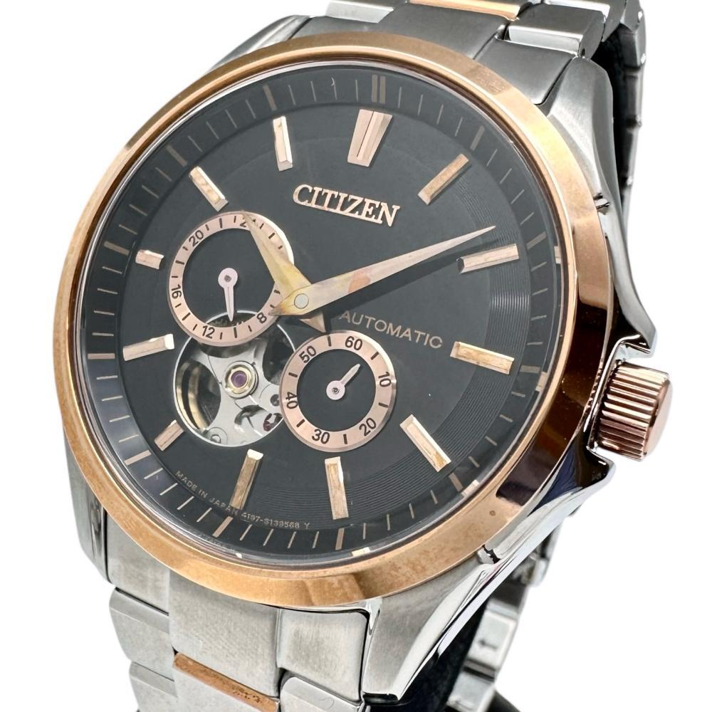 > 訳アリ CITIZEN/シチズン コレクション NP1014-51E 腕時計 ステンレス/PGメッキ 自動巻き ブラック文字盤/シルバー×PG メンズ