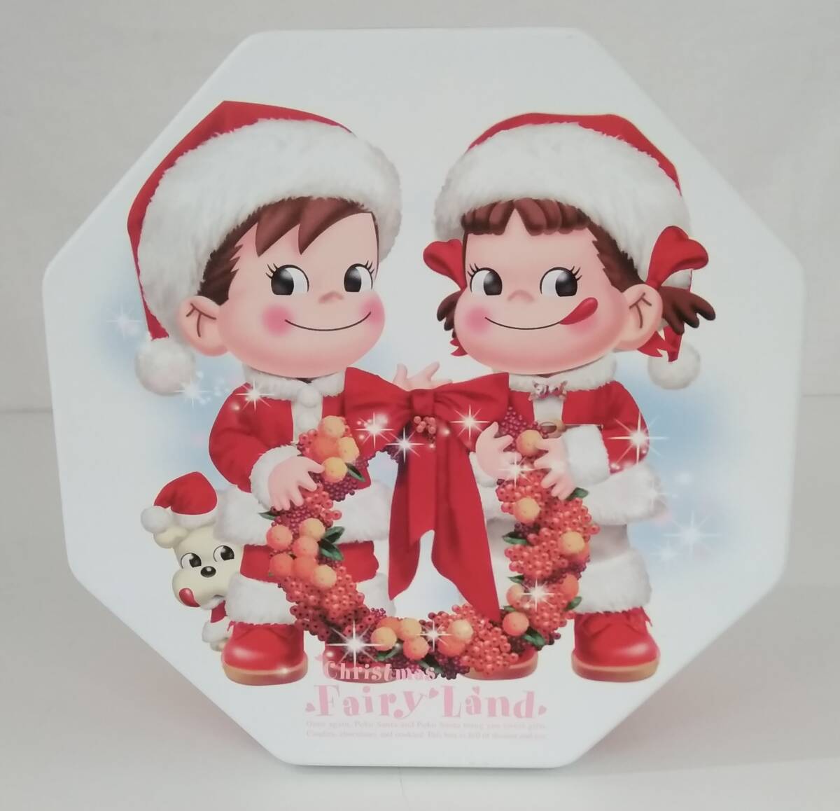 - 【TN-2062】[中古品]不二家 ペコちゃん ポコちゃん クリスマスフェアリーランドL お菓子缶 リース ① [KO]