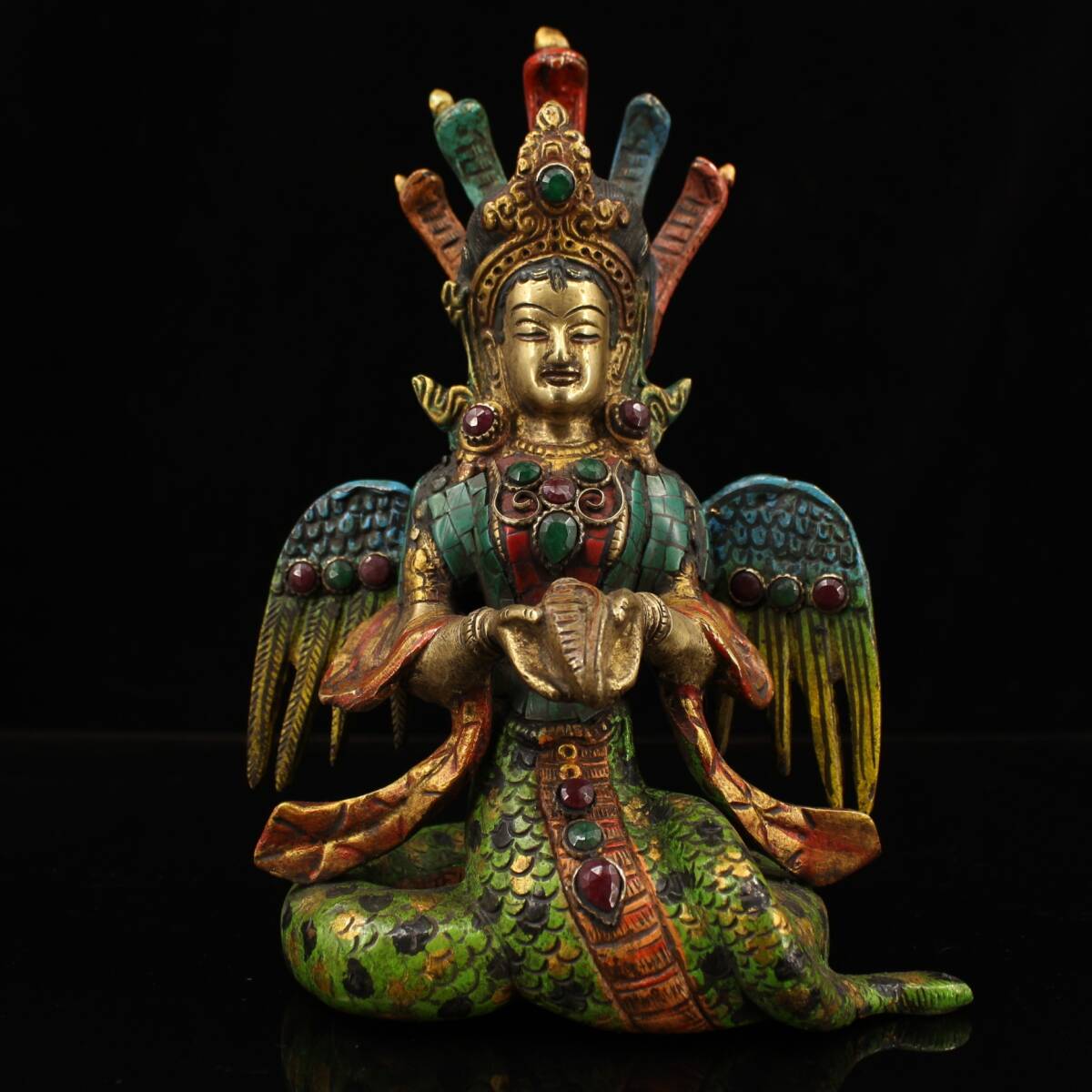 - 蔵友旧蔵出 銅製 寶石嵌 彩繪 描金 龍樹菩薩像 貴重品 置物 古賞物 密宗密教 供養品 仏教美術品