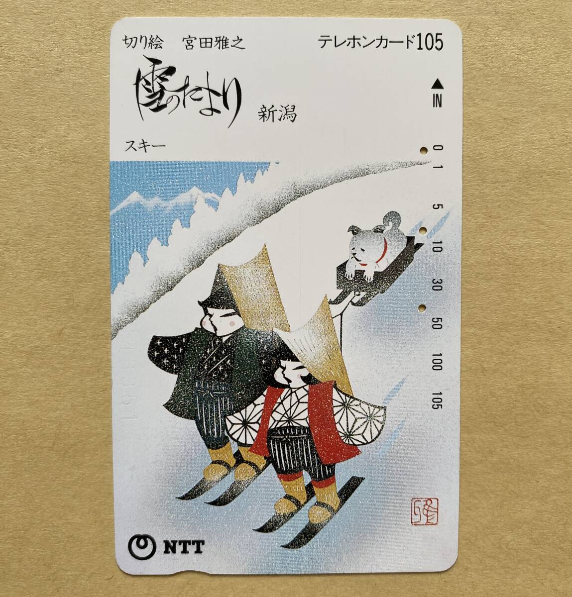 - 【使用済】 テレカ 雪のたより 新潟 切り絵 宮田雅之