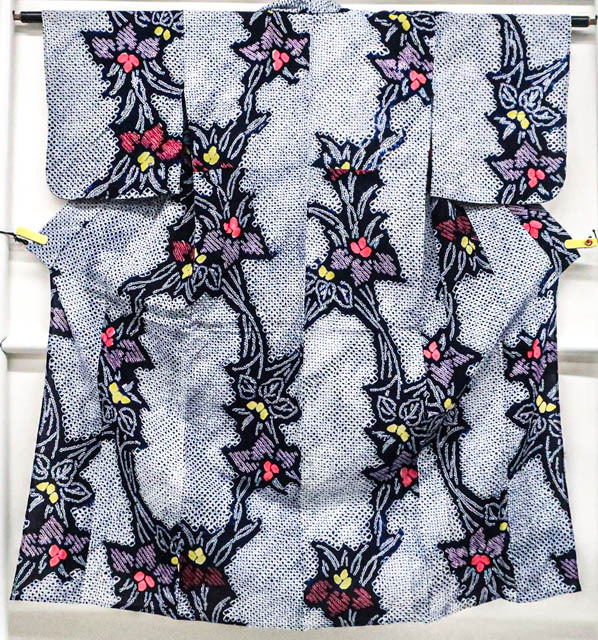 - 《京都一輝堂》【着物】 浴衣 昭和レトロ 有松絞り 花文 身丈約149.5cm 裄丈約62cm r7z05-443