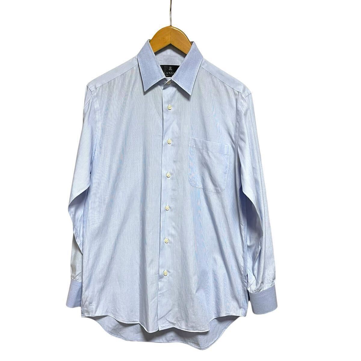 > ※I LANVIN COLLECTION ランバンコレクション 長袖ワイシャツ ブルー 日本製 コットン100% 表記46 サイズM相当