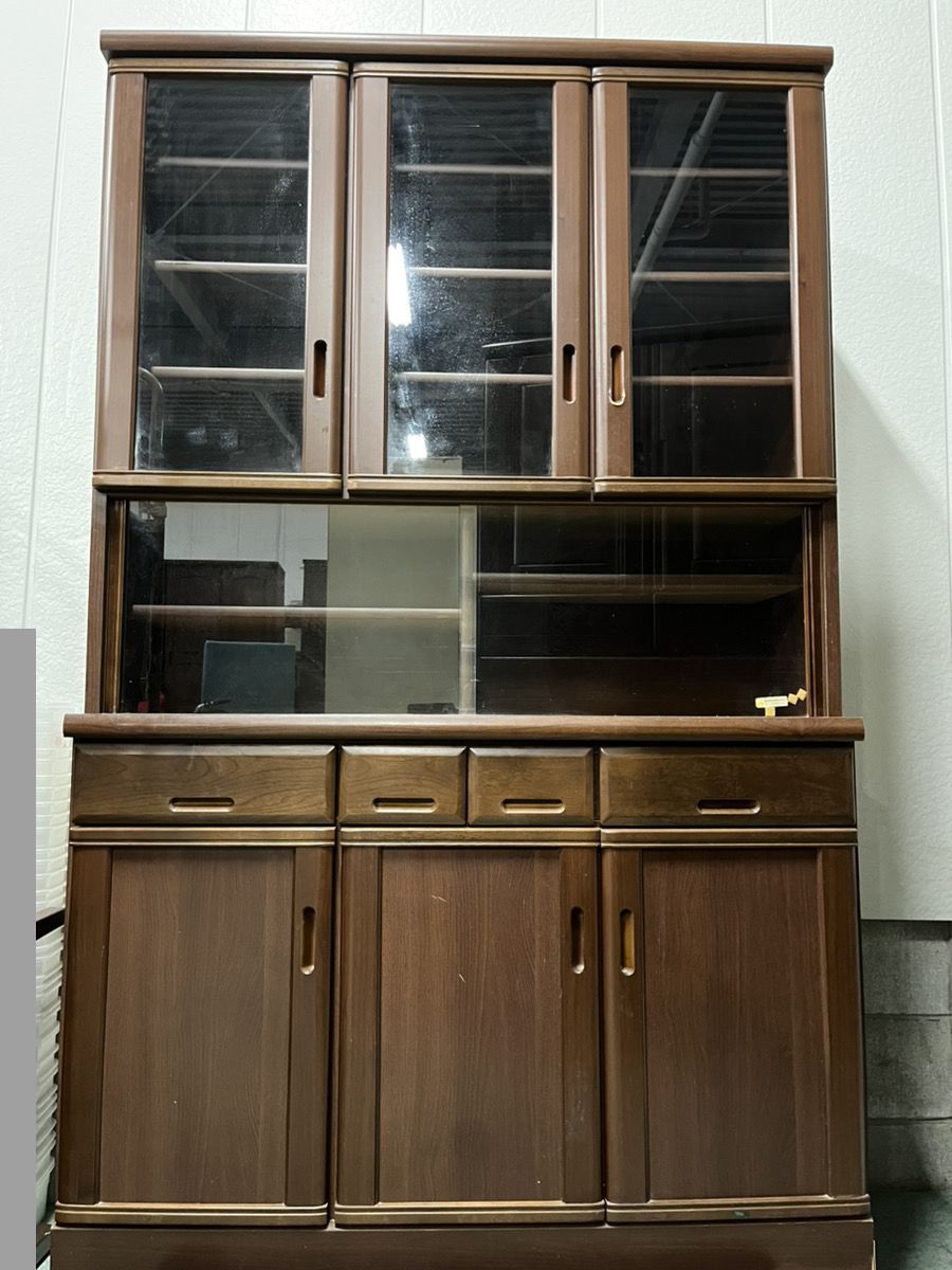 > 木製 食器棚 大型 収納棚 飾り棚 ガラス戸割れあり 幅118cm×奥行44cm×高さ188cm 直接引取(東大阪)・自社配達歓迎