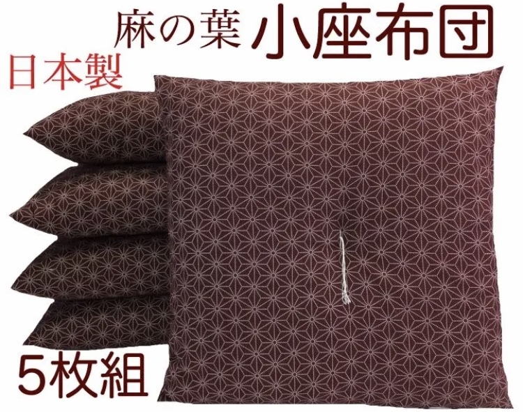 - 【送料無料】小座布団 麻の葉 えんじ 45×45cm 中身本体 5枚組 日本製 店舗・飲食店様向き