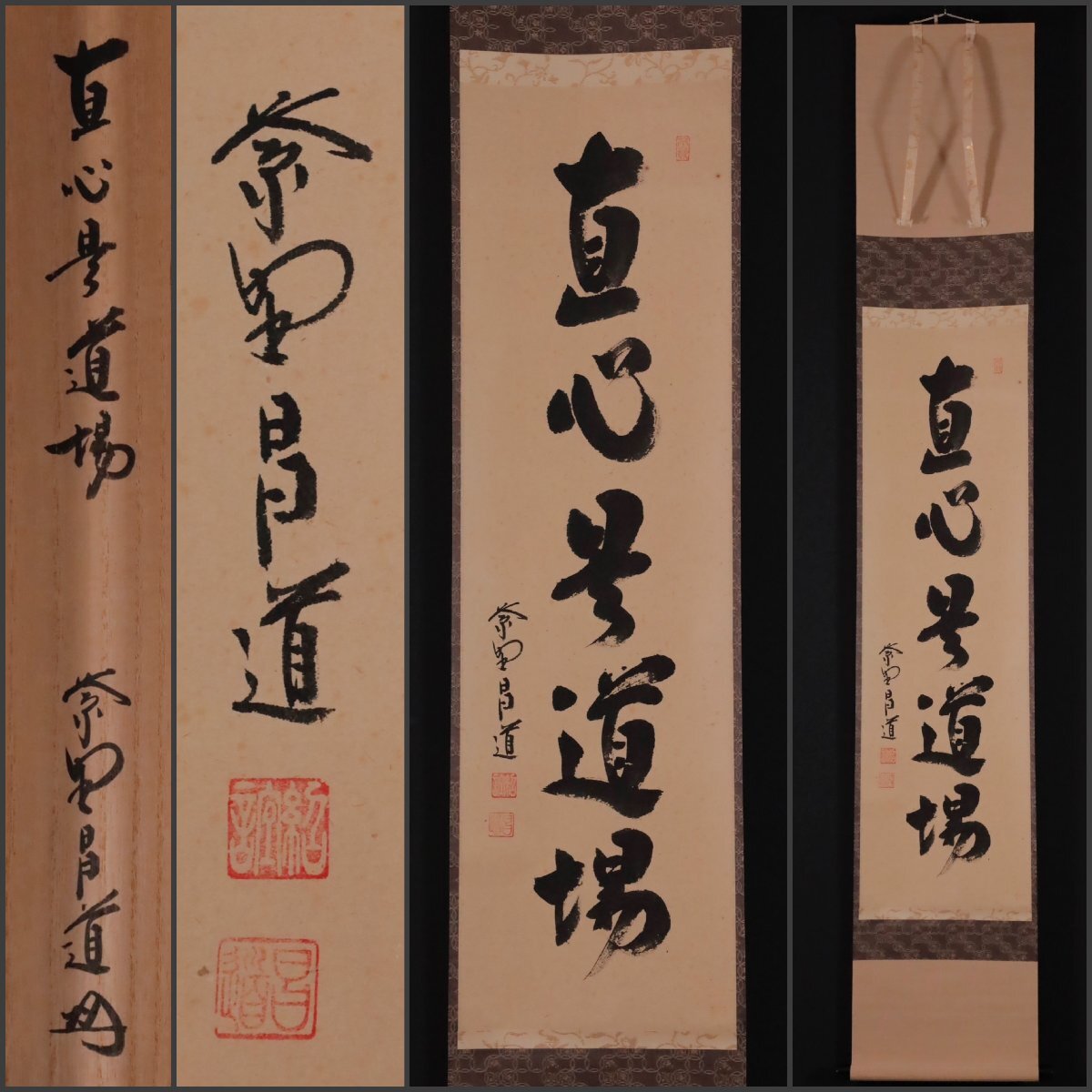 - 【模写】吉】12436 前田昌道 書「直心是道場」 共箱 大徳寺 塔頭 瑞峯院住職 和歌山県の人 仏教 茶掛け 茶道具 禅語 掛軸 掛け軸 骨董品