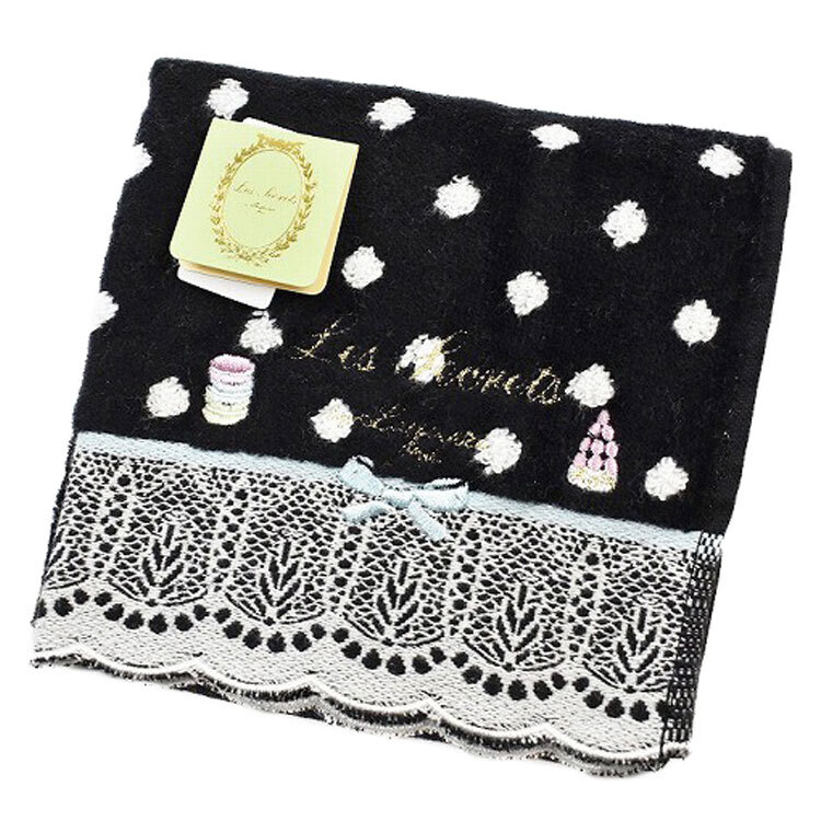 - ラデュレ タオルハンカチ ハンカチ 1枚 レディース ブランド 黒 ブラック ドット マカロン リボン 女性 婦人 ハンドタオル