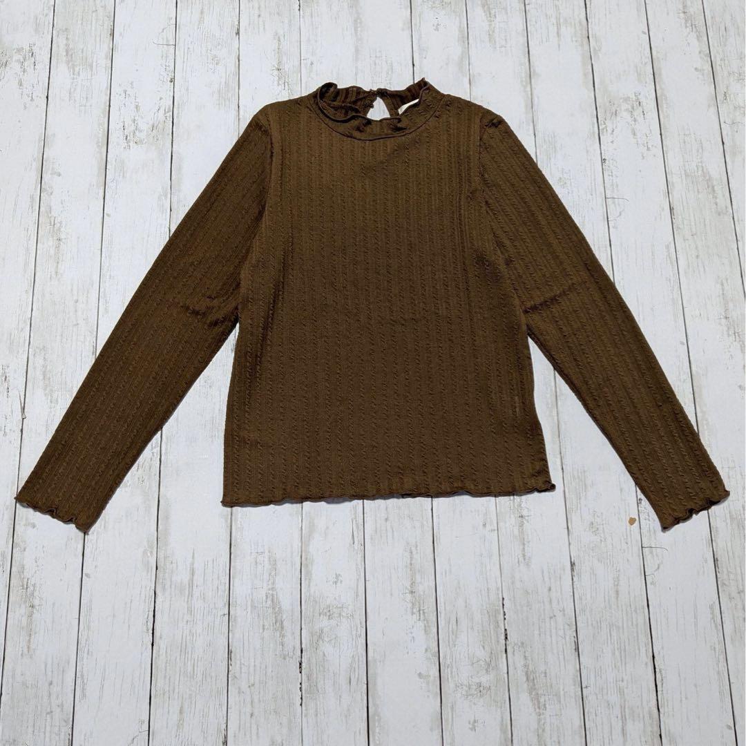 - 訳あり 美品 長袖トップス L 茶色 シンプル 無地