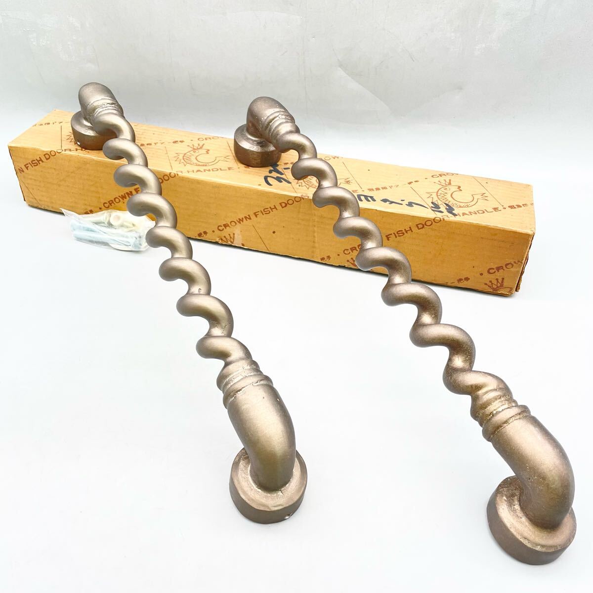 - [新品 未使用品] ANGEL エンゼル 冠魚印 ドアハンドル 466mm 大型 ドア 扉 玄関 ステンレス製 アンティーク レトロ 建具 金物屋 在庫品