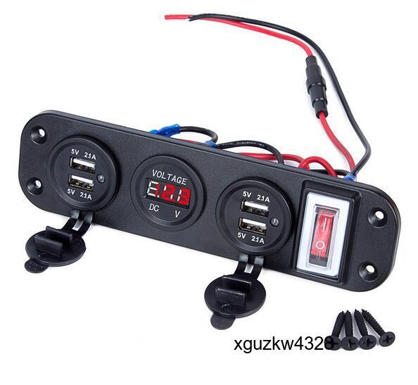 - 5V 2.1A + 2.1A ダブルUSB車の充電器12V 24V Ledディスプレイデジタル電圧計シガーライター電源出口トグルスイッチパネル お色選択可/XS520
