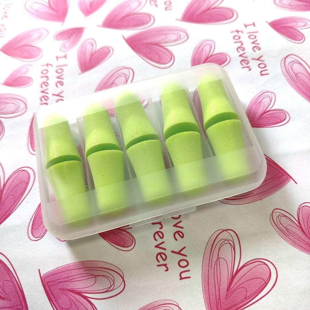 - 専用ケース付き 耳栓5セット 蛍光グリーン 勉強 仮眠 リモートワーク仕事