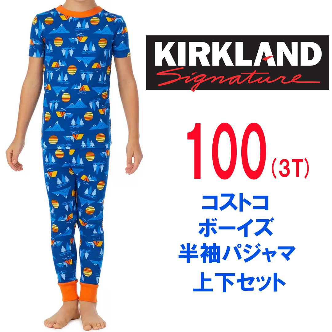 > 新品 上下 セット 100 ★ コストコ カークランドシグネチャー ボーイズ 半袖 パジャマ Tシャツ ロングパンツ 3T ブルー キャンプ テント