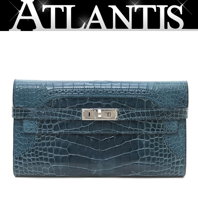 - 【広尾店】 エルメス HERMES ケリーウォレット ギリーズ クロコダイルアリゲーター コルヴェール X刻印(2016年製) 【15784】