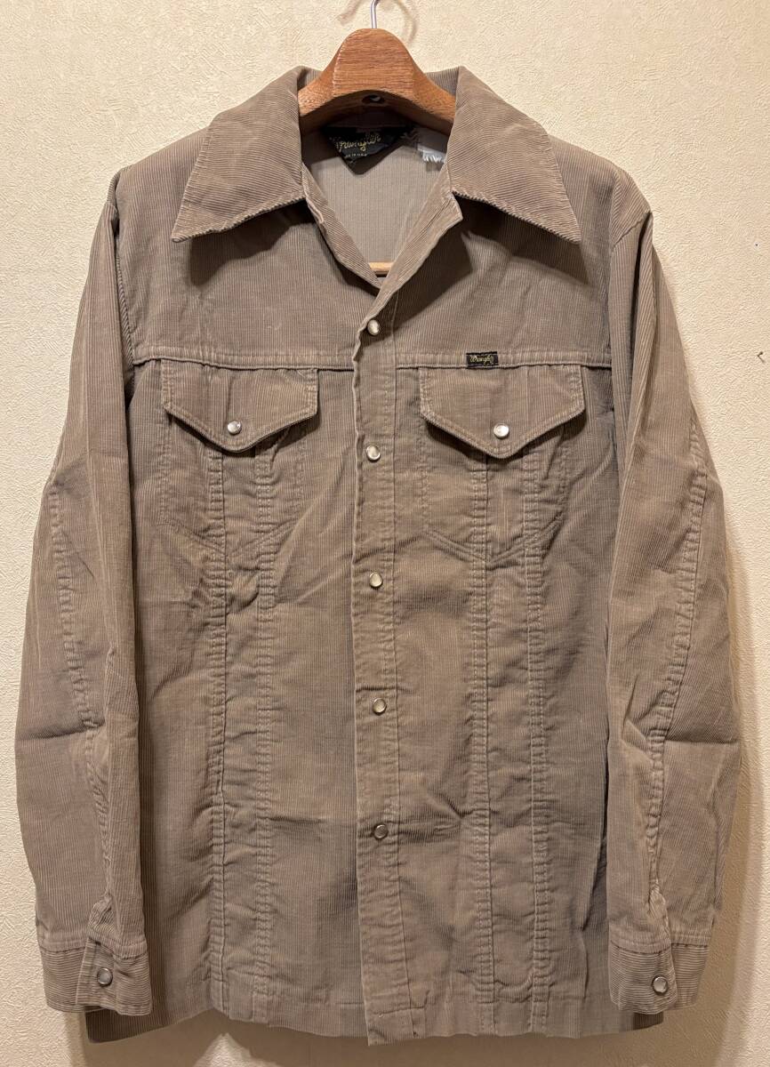 > USA製コーデュロイ70sビンテージWranglerシャツ/ジャケットLモカ ベージュ オープンカラーUS製ウエスタン トラッカー70年代1970sラングラー