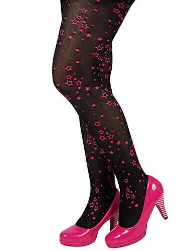 - NA ピンク の 星柄 スター 柄 タイツ ( ブラック × ピンク ) ハロウィン コスプレ 服飾小物 609 黒 ダンス パンスト スットキング