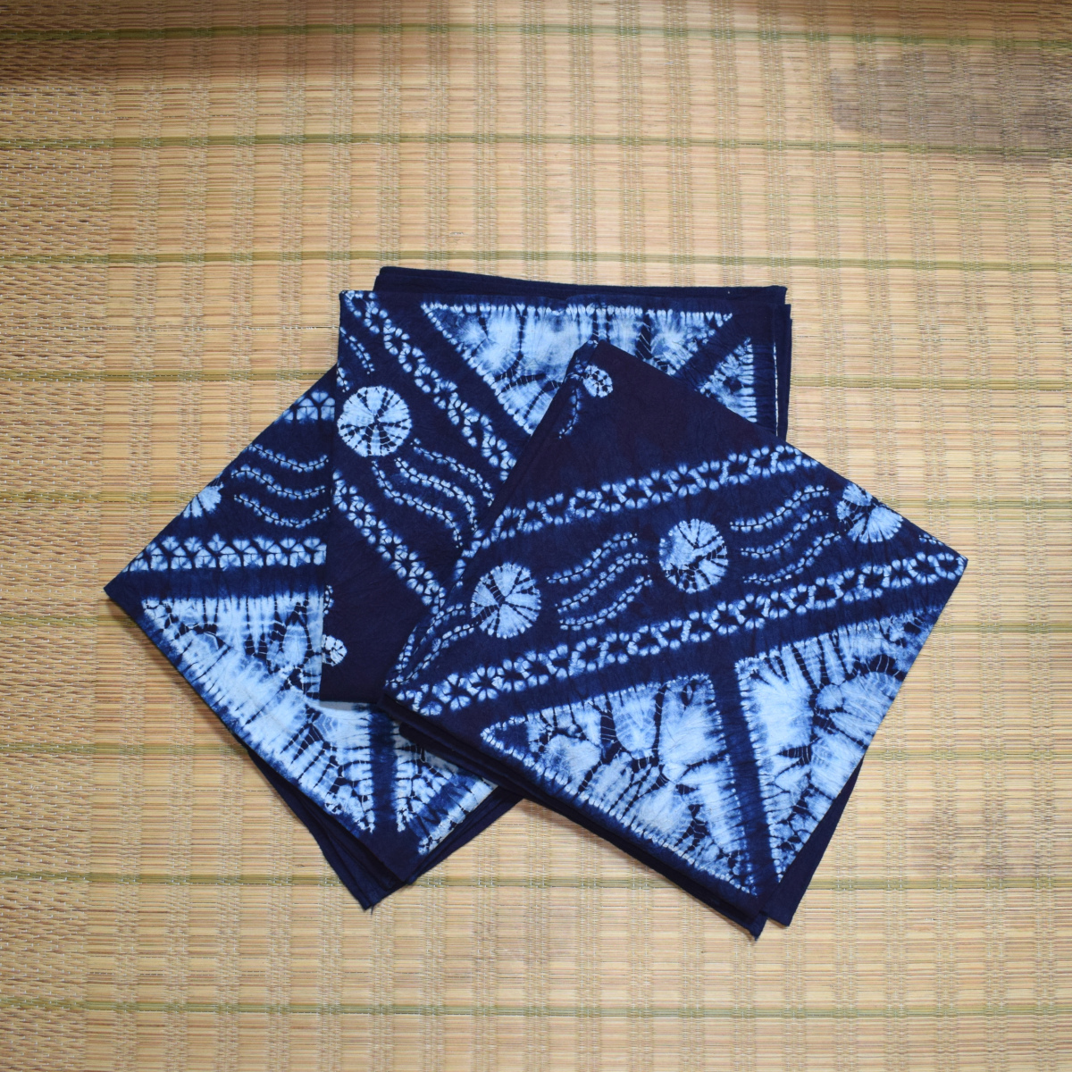 - 藍染 同柄三枚セット テーブルクロス タペストリー マルチカバー 横幅約107cm 縦幅約106cm 綿 【kk4-3】