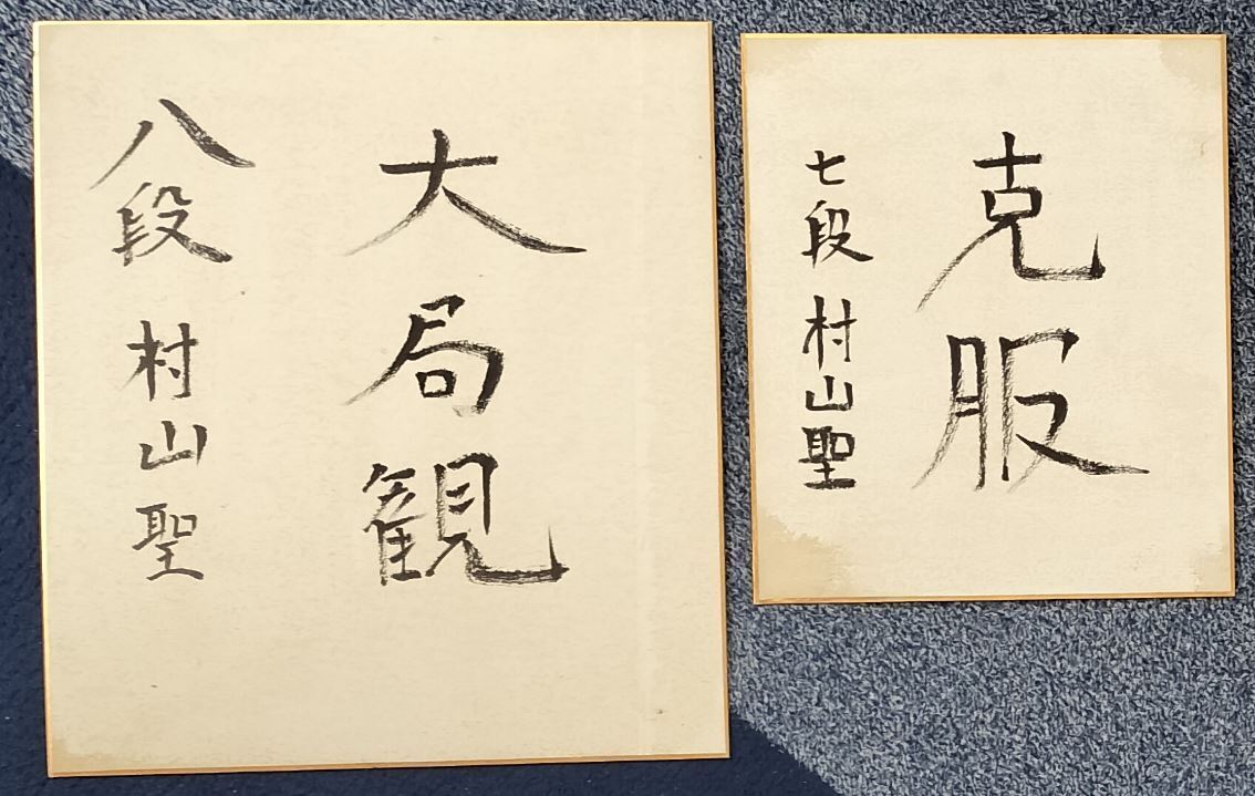 - 送料無料 2枚 まとめ売り 村山聖 棋士 将棋 色紙 サイン 27cmと17cm 直筆 貴重品 レア 肉筆 経年劣化 金言 「大局観 克服」