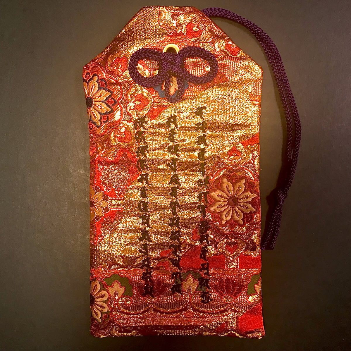 - ☆新品 送料無料☆ 御守りの形をした経本入れ 金蘭 ☆ 不動明王のご真言「火界呪」の経本袋 経本ケース 経本入れ 小物入れ 密教 呪術