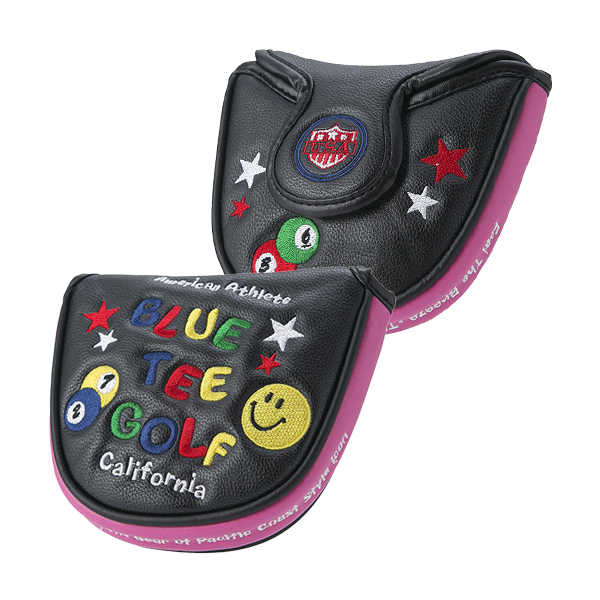 - △8-MPT【ブラック・ピンク】ブルーティーゴルフ【スマイル&ピンボール】マレット型パターカバー BLUE TEE GOLF PC-002 送料無料