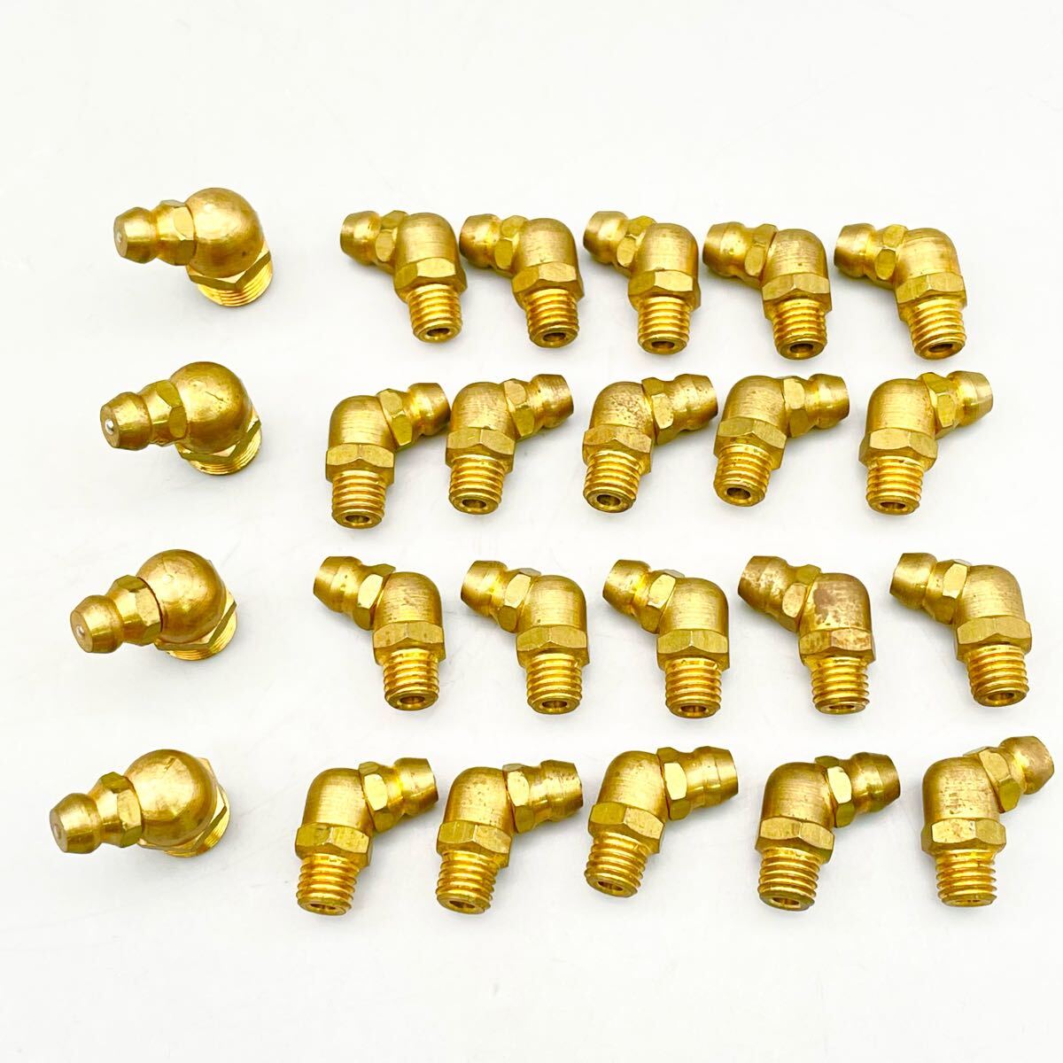- [新品 未使用品] 真鍮製 グリスニップル 45° 2種 合計24個 セット グリース 注入 金具 逆止弁 建設機械 黄銅 金物屋 在庫品 まとめ売り