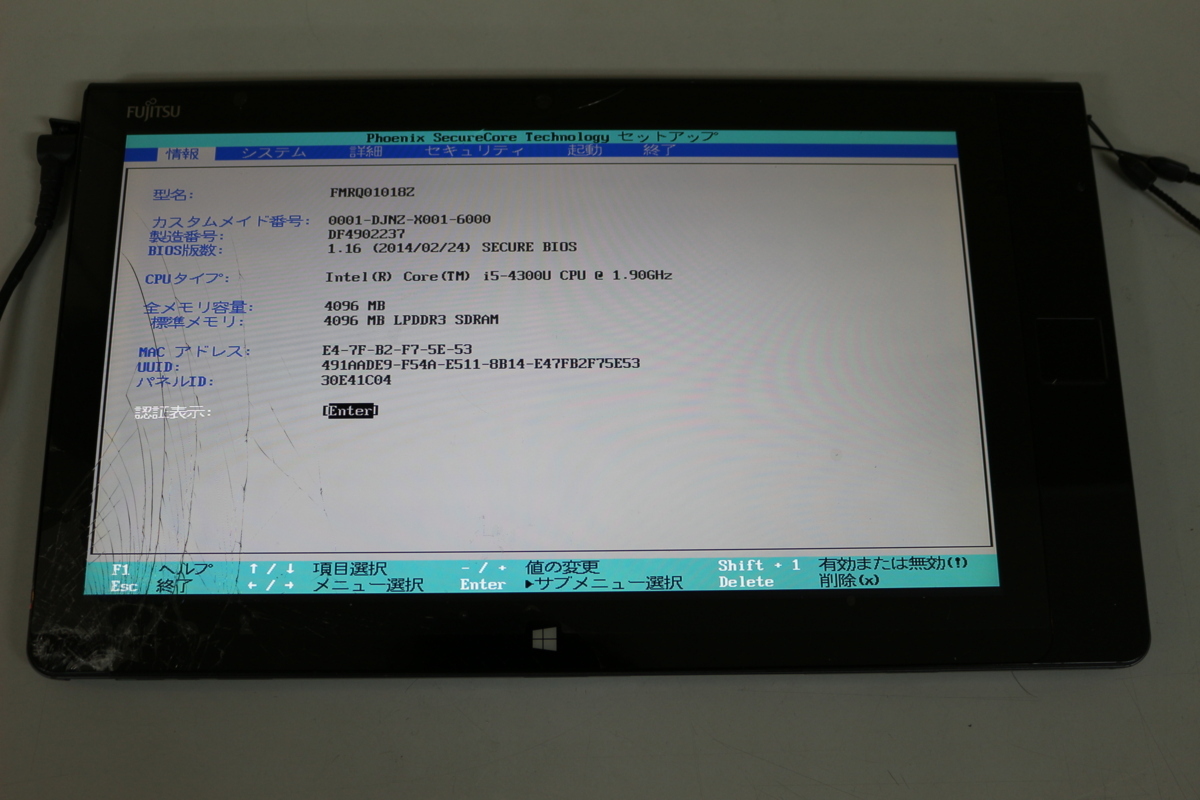 - ジャンク品タブレット 富士通 ARROWS Tab Q704/PV FARQ01018Z i5 メモリ4GB SSD128GB 12.5inch カメラ内蔵 OS無 起動確認済 代引き可