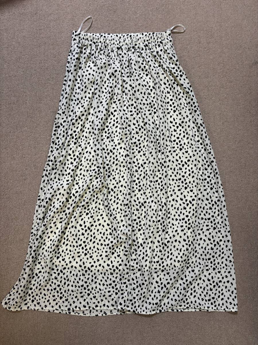 > GLACIER グラシア ダルメシアン柄 フレアロングスカート ロンスカ L シンプル ロングスカート 裏地付 白 黒 ホワイト ブラック/EH