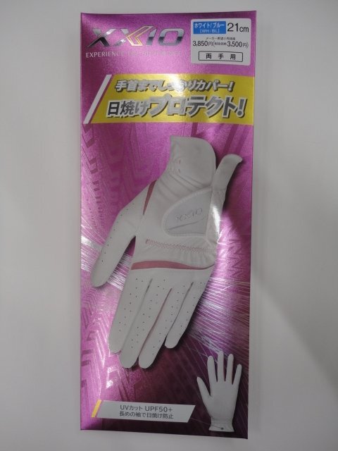 > ■ゼクシオ ゴルフ『楽に握れてグリップ力に優れた』レディース 全天候 両手グローブ【21cm/WH&BL】GGG-X022WW