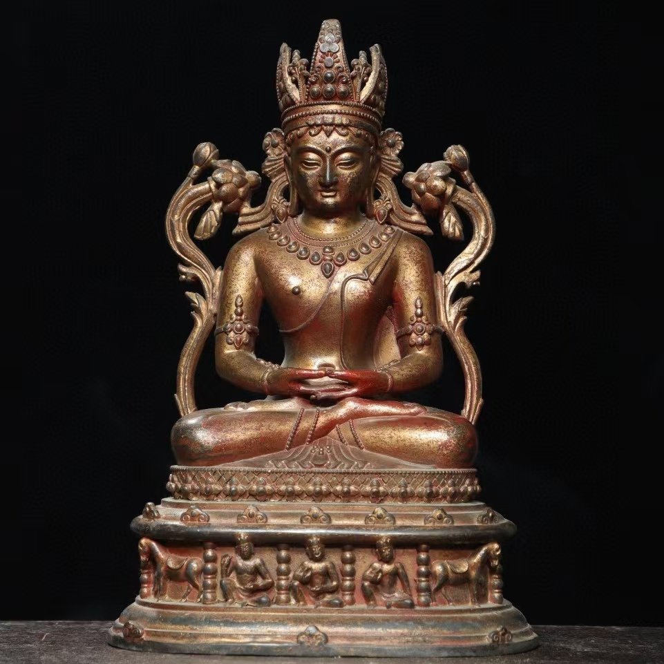> 仏像 清代 旧蔵 宗教蒔絵【長寿仏】仏像を家に奉る 銅製 銅琉金 仏教 唐物 收蔵品 時代物 古美術 細密造 古置物 希少珍品 供養品 5.31