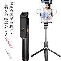 インスタ映えに最適♪ ダブルフラッシュ付きで明るく撮れるワイヤレス自撮り棒です。