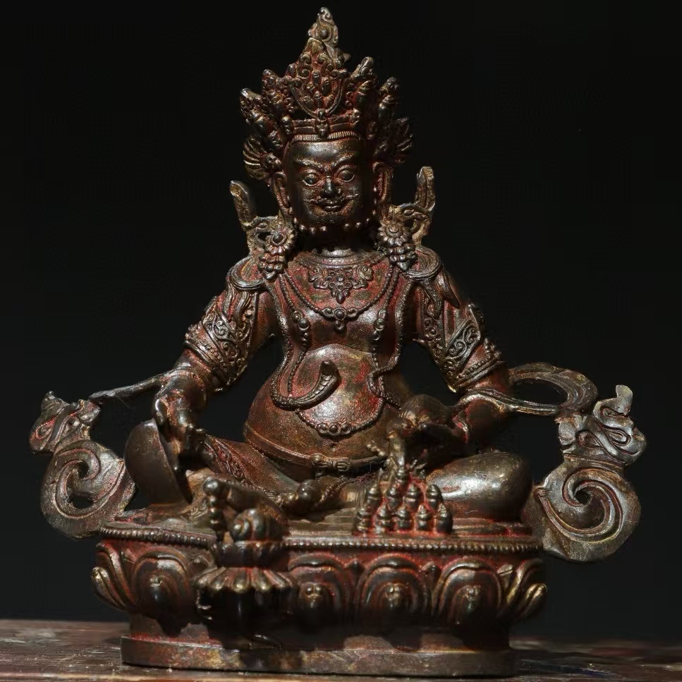 > 仏像 清代 旧蔵 古銅蒔絵【蔵伝黄財神仏像】造像 銅製 銅琉金 仏教 唐物 收蔵品 時代物 古美術 細密造 古置物 希少珍品 供養品 5.31