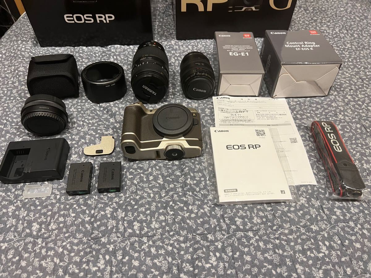 > ほぼ未使用 Canon EOS RPゴールド、コントロールリングマウントアダプター、純正バッテリー2個、おまけレンズ2本 キヤノン